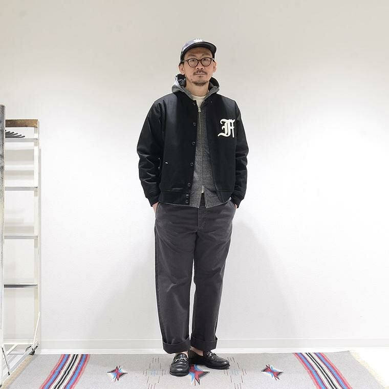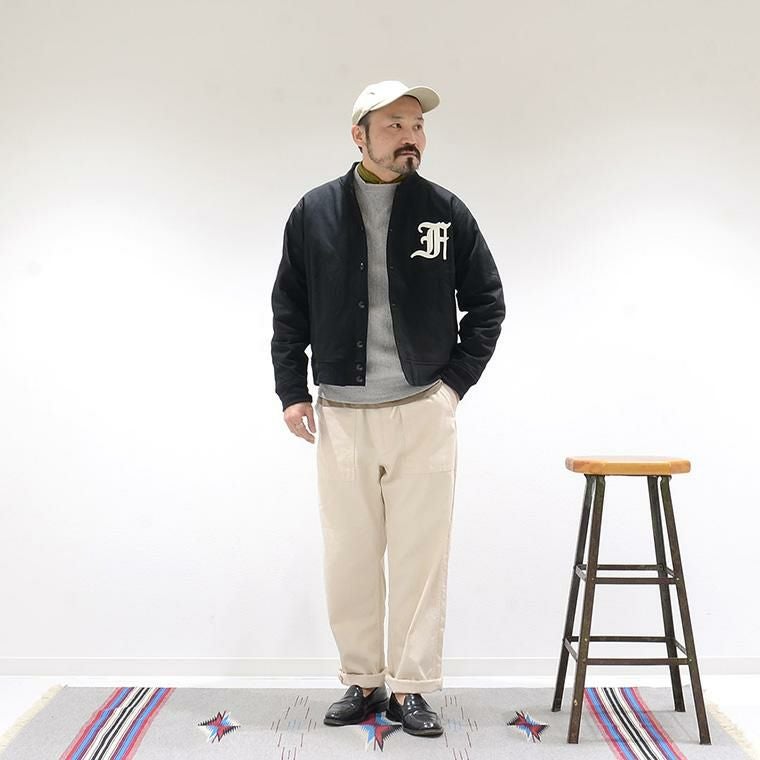 アメリカのアスレティックウェアブランド、FELCO(フェルコ)のTWILL AWARD BUTTON JACKET。ツイル素材を使用したスタジアムジャンバー。セットインの袖付け、ボタンフロントが特徴的なディテールとなっているスタジャン。腰上にはハンドポケットを装備。袖口と裾にはコットンリブを装備。 胸部分のFELCO(フェルコ)のオリジナルフェルトワッペンがスタイリングのちょっとしたアクセントになってくれます。アウターにはコットンツイルを採用しているので着用シーズンも長く、経年変化も楽しみな永く愛用して頂ける1着となっています。