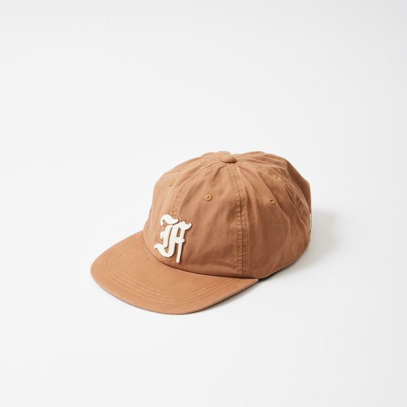 FELCO (フェルコ) NEW SHAPE TWILL STONE WASHED BB CAP W/OLD FONT "F" FELT - DK BROWN_DK BROWN STITCH_F NATURAL
