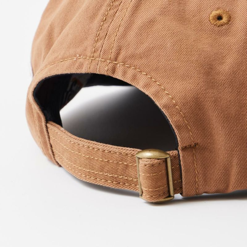 ストーンウォッシュ加工によるガシガシ使い込んだかのような雰囲気が良い感じのベースボールキャップです。定番のベースボールキャップタイプと比べて若干ツバが大きく平らな仕上がり。着用感は浅めでスッキリとしたシルエットのキャップなので被り易く、バックにはアジャスターも装備しているのでサイズの自由度が高くなっています。コットンツイル素材はオールシーズン使えますし、経年変化も楽しんで頂けるので長く愛用して頂けます。幅広いスタイリングにも使って頂けるベースボールキャップです。