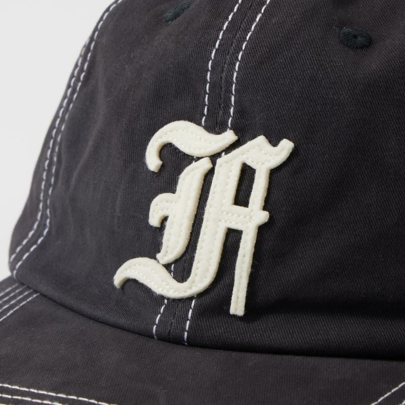7. FELCO (フェルコ) NEW SHAPE TWILL STONE WASHED BB CAP W/OLD FONT "F" FELT - BLACK_NATURAL STITCH_F_NATURAL