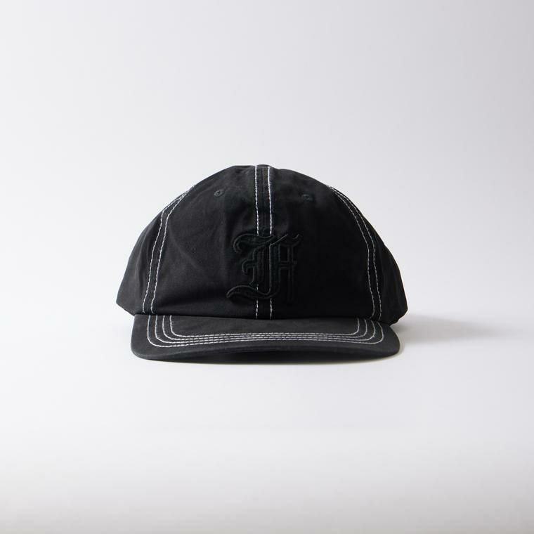 FELCO (フェルコ) NEW SHAPE TWILL STONE WASHED BB CAP W/OLD FONT "F" FELT - NAVY_NATURAL STITCH_F_NATURAL
