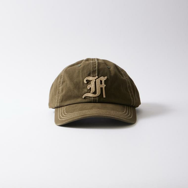 FELCO (フェルコ) NEW SHAPE TWILL STONE WASHED BB CAP W/OLD FONT "F" FELT - NAVY_NATURAL STITCH_F_NATURAL