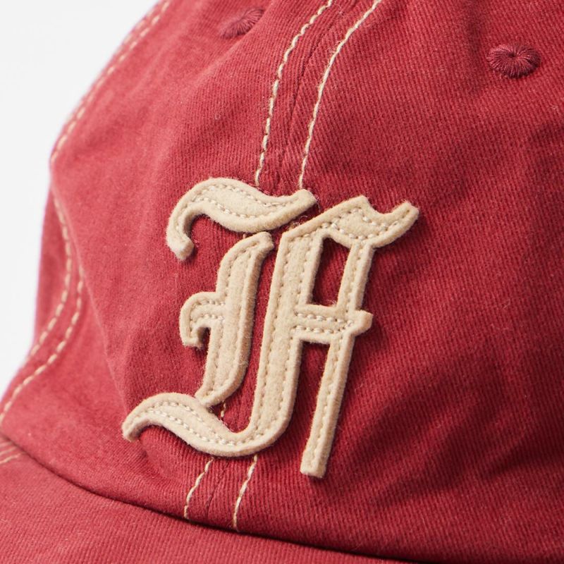 FELCO (フェルコ) NEW SHAPE TWILL STONE WASHED BB CAP W/OLD FONT "F" FELT - NAVY_NATURAL STITCH_F_NATURAL