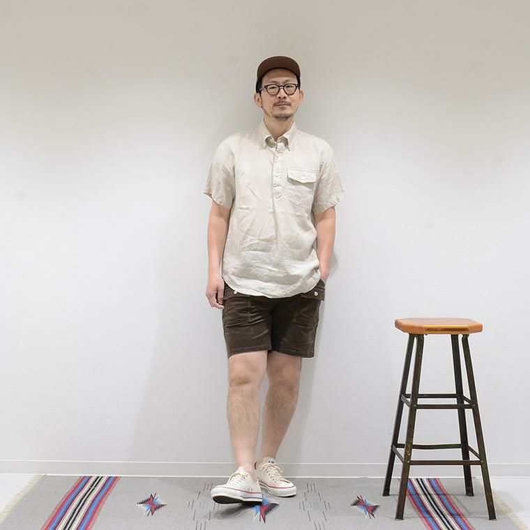 アメリカ発「FELCO(フェルコ)」のCORDUROY BUSH SHORT 21W STRETCH CORDUROY。細かい畝のコーデュロイを使用した、膝上丈のショーツ。70'sのオールドサーフスタイルをベースに、ブッシュパンツをモチーフにしたデザイン。フロントのポケットは、ポケットの上に更にポケットが付いたブッシュパンツらしいデザインで、バックはスナップボタン付きのフラップポケットが二つ付いています。横方向の伸縮性が高いストレッチコーデュロイを採用しており、ウエスト部分もゴムの仕様になっている為、非常に楽な履き心地でストレスフリーに穿いて頂けます。シンプルになる夏のスタイルのアクセントになってくれるアイテムです。