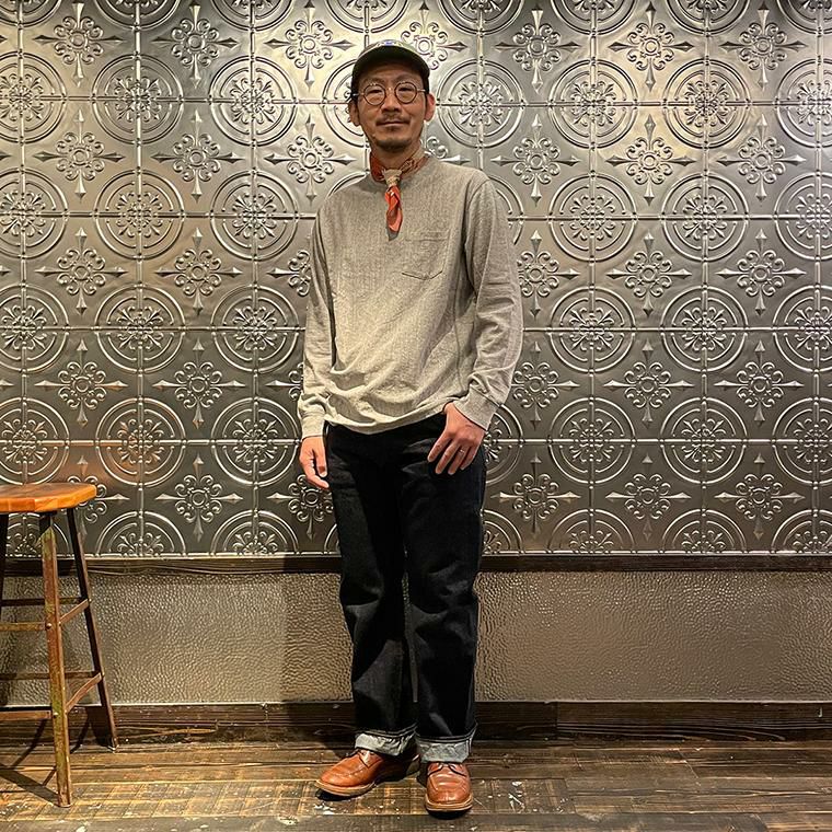 FELCO (フェルコ) L/S INVERSE WEAVE CREW NECK POCKET T 7oz 18 SINGLE JERSEY - TWISTED GREY