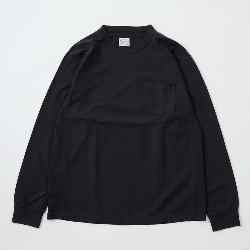 FELCO (フェルコ) L/S INVERSE WEAVE CREW NECK POCKET T 7oz 18 SINGLE JERSEY - BLACK