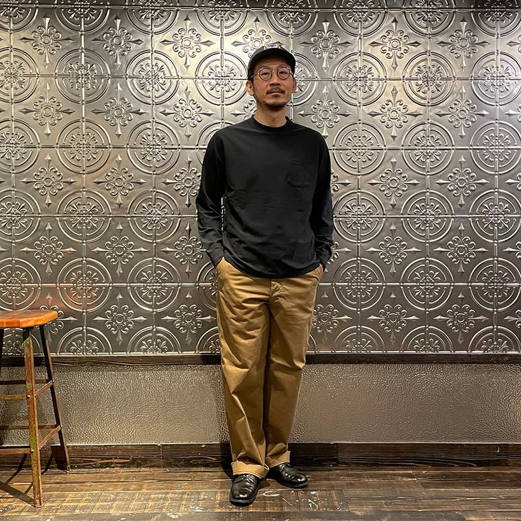 5. FELCO (フェルコ) L/S INVERSE WEAVE CREW NECK POCKET T 7oz 18 SINGLE JERSEY - BLACK