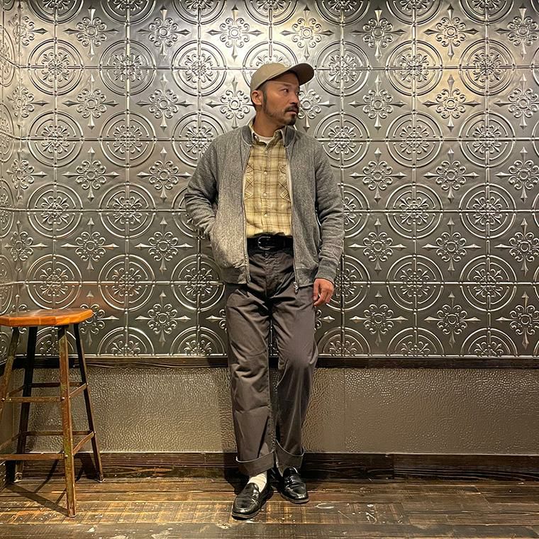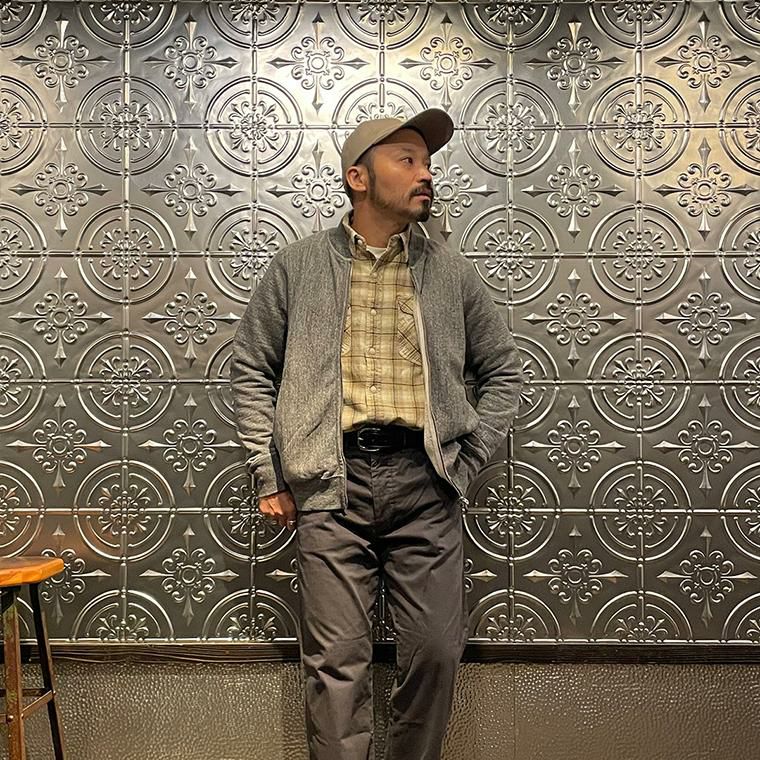 170センチ68キロやや肩幅広めの私の体型でサイズ選びはMサイズで個人的には丁度良いサイズだと思いました。身幅はややゆとりのあるシルエットで、アームホールはスッキリとしたバランス。肩幅は広めで、袖丈はやや長めのつくりです。このサイズであればインナーにシャツやカットソーぐらいの軽めのアイテムを着て羽織ってもストレスなく着れます。ただもう少しゆとりがある着方がお好みでしたらLサイズがオススメ。とくに身幅、アームホール、着丈は雰囲気が変わりますね。アメリカらしいヴィンテージ感漂うベースボールカラーのジャケット。ガチっとしたコシのある柔らかい生地感を採用した耐久性に優れた着心地の良い1着。春秋シーズンはアウター使いとして、寒い冬シーズンはインナー使いとして。使い勝手の良さを考えるとかなり重宝できるアイテムです。