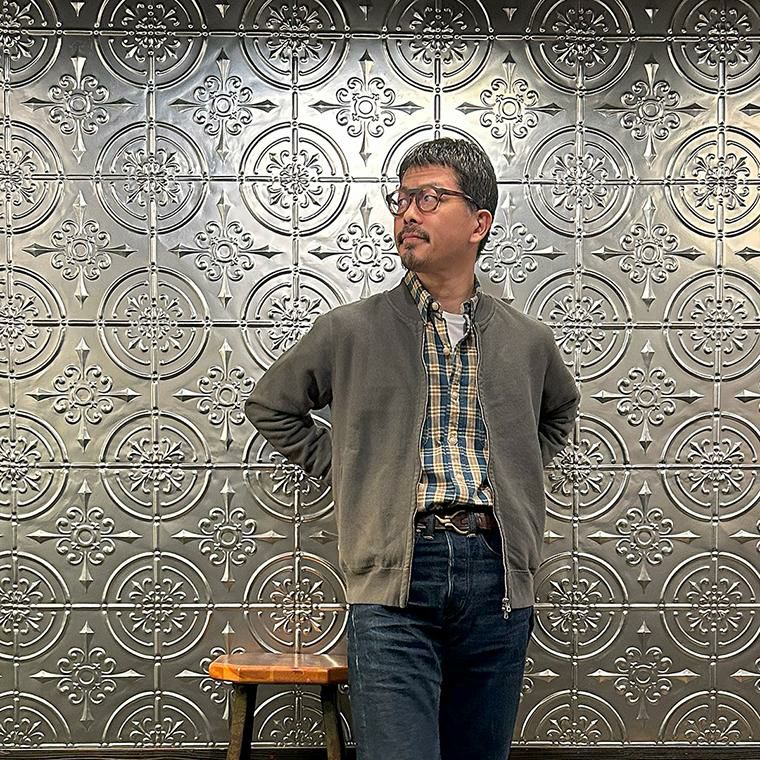 170センチ68キロやや肩幅広めの私の体型でサイズ選びはMサイズで個人的には丁度良いサイズだと思いました。身幅はややゆとりのあるシルエットで、アームホールはスッキリとしたバランス。肩幅は広めで、袖丈はやや長めのつくりです。このサイズであればインナーにシャツやカットソーぐらいの軽めのアイテムを着て羽織ってもストレスなく着れます。ただもう少しゆとりがある着方がお好みでしたらLサイズがオススメ。とくに身幅、アームホール、着丈は雰囲気が変わりますね。アメリカらしいヴィンテージ感漂うベースボールカラーのジャケット。ガチっとしたコシのある柔らかい生地感を採用した耐久性に優れた着心地の良い1着。春秋シーズンはアウター使いとして、寒い冬シーズンはインナー使いとして。使い勝手の良さを考えるとかなり重宝できるアイテムです。
