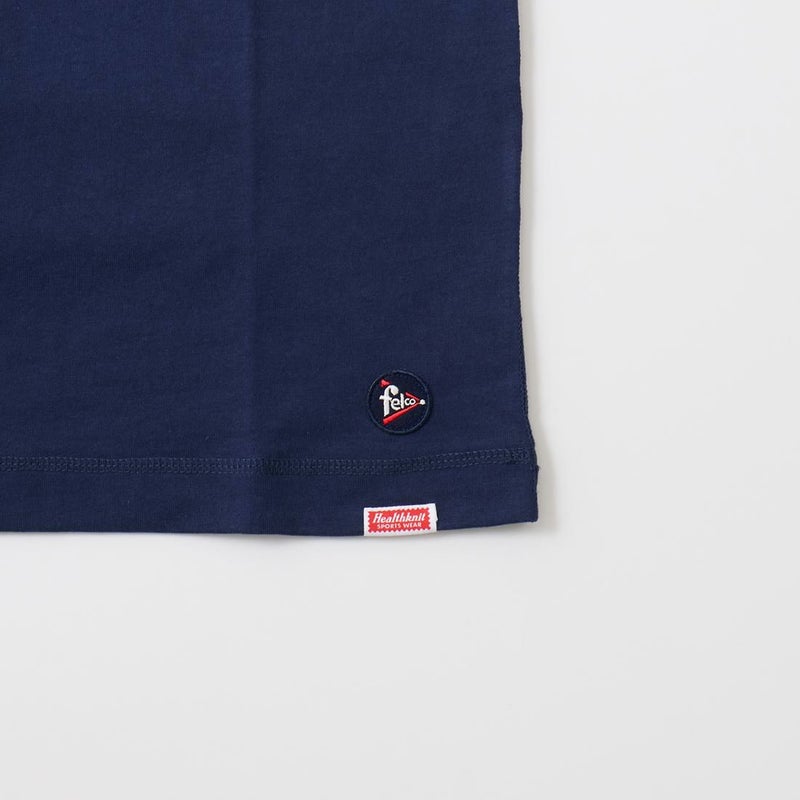 HEALTH KNIT(ヘルスニット)とFELCO(フェルコ)のダブルネームのS/S CREW NECK POCKET T SHIRT U.S.COTTON OPEN END JERSEY。オーソドックスなクルーネックのポケットTシャツ。幅が広めのバインダーネックがクラシカルな雰囲気。左胸にはFELCO(フェルコ)のアイコン的なディテールのポケットを装備。風合いの良いU.Sコットンを特注で編み立てた生地を使用。吸水性と速乾性に優れ、抗菌、防臭効果も備えた優れもの。左裾に付けられたFELCO(フェルコ)のワッペンが全体のアクセントになっています。