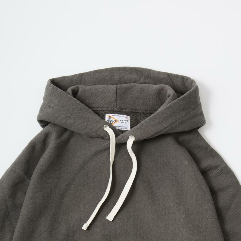 FELCO(フェルコ)の16oz TERRY CLASSIC FIT INVERSE WEAVE SWEAT HOODED PULLOVER。しっかりとした生地感の16オンスのフレンチテリー(裏起毛していないスウェット生地)を使用したプルオーバーパーカー。生地を横向きに使用することで縦縮みを軽減し、サイドリブが横縮み防止と動きやすさを実現したインバースウィーブを仕様。ガシガシ着倒してもへこたれないタフな1枚。袖と裾のリブはやや長めに設定されたヴィンテージを彷彿させるディテール。腰部分に装備された手の入れやすいハンドウォーマーポケットもポイント。従来のモデルよりも全体的にゆとりを持たせたクラシックフィット。ストレスのない着用感のスウェット。