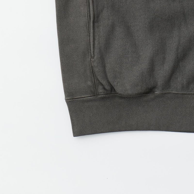 FELCO(フェルコ)の16oz TERRY CLASSIC FIT INVERSE WEAVE SWEAT HOODED PULLOVER。しっかりとした生地感の16オンスのフレンチテリー(裏起毛していないスウェット生地)を使用したプルオーバーパーカー。生地を横向きに使用することで縦縮みを軽減し、サイドリブが横縮み防止と動きやすさを実現したインバースウィーブを仕様。ガシガシ着倒してもへこたれないタフな1枚。袖と裾のリブはやや長めに設定されたヴィンテージを彷彿させるディテール。腰部分に装備された手の入れやすいハンドウォーマーポケットもポイント。従来のモデルよりも全体的にゆとりを持たせたクラシックフィット。ストレスのない着用感のスウェット。