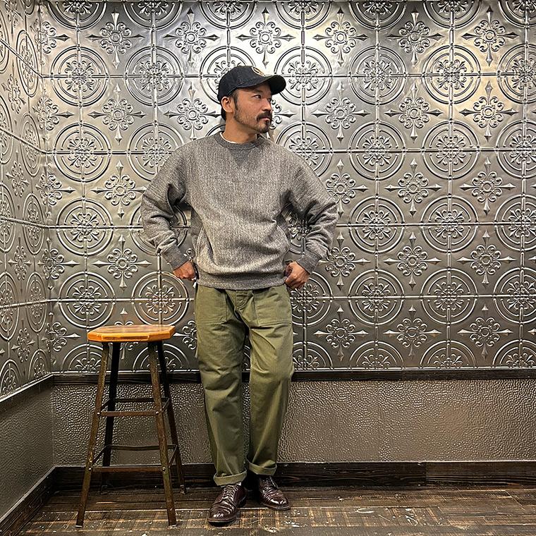 FELCO (フェルコ) 16oz TERRY CLASSIC FIT INVERSE WEAVE DOUBLE V GUSSET SET IN CREW SWEAT W/SLASH POCKET - TWISTED GREY