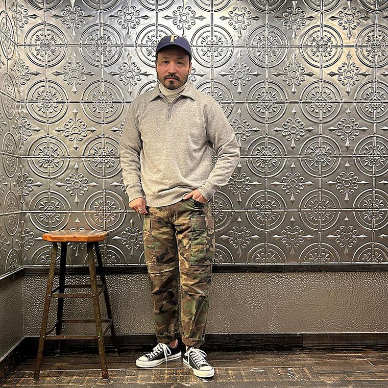 170センチ68キロやや肩幅広めの私の体型でサイズ選びはMサイズで程よい着用感。ゆったり着るならLサイズを選びます。普段穿くパンツのサイズ感、私の好みのサイズ感から考えるとMサイズが丁度良いサイズだと思いましたね。以前のモデルより生地を軽くして、首元の仕様を変更させリニューアルして登場。ヴィンテージ感漂う雰囲気、リラックス感のあるゆったりとしたサイズ感、フラットシーマ縫製による着心地抜群の仕上がり。ヴィンテージ好きな方には勿論のことトラッド好きにもオススメしたくなる1着ですね。