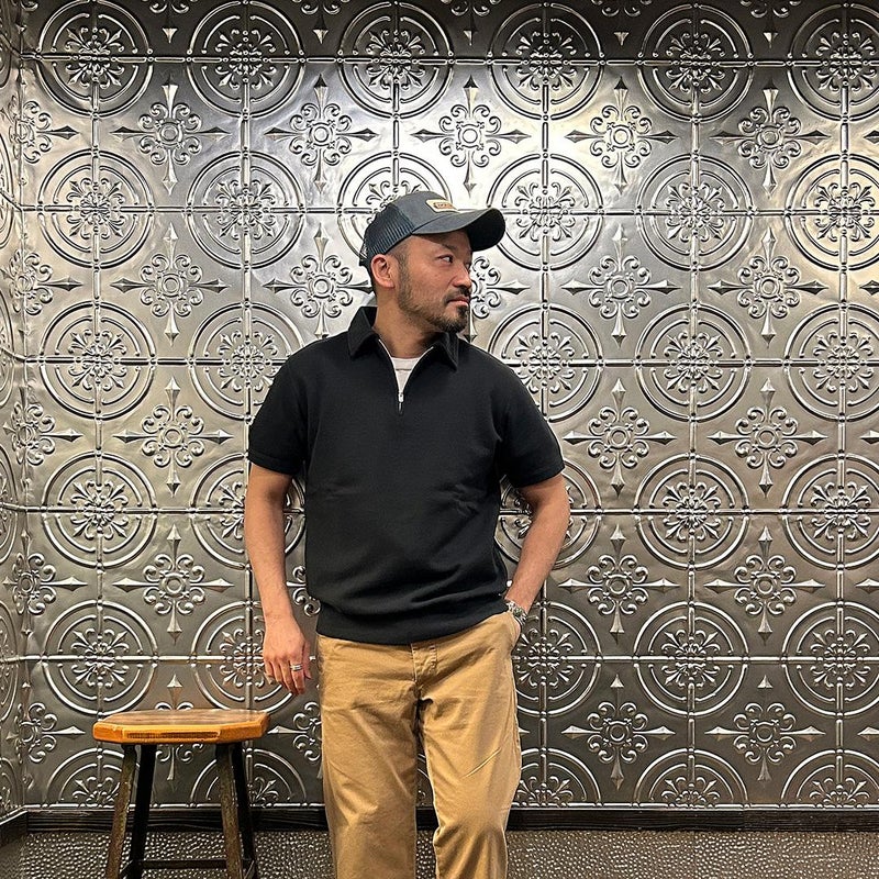 5. FELCO (フェルコ) 10oz LT WEIGHT FRENCH TERRY S/S HALF ZIP SWEAT - BLACK