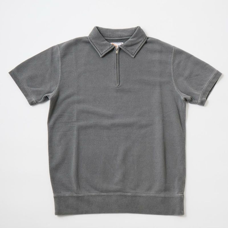 ピグメント加工 メンズ 10オンス ライトウェイト フレンチテリー 半袖スウェット ハーフジップ 日本製
