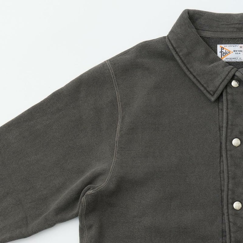 FELCO(フェルコ)のCLASSIC FIT COACH JACKET 16oz HEAVY WEIGHT TERRY。16オンスの厚みとコシのある生地を使用したスウェットのコーチジャケット。フェルコのロゴ入りのフロントスナップ。左右の腰部分にはハンドポケットを装備。バックサイドにフラップ付きのパッチポケットを装備。経年変化も楽しめて着倒してもへこたれないタフな1着。スポーツスタイルに限らずスタイリングの幅が広いコーチジャケットです。