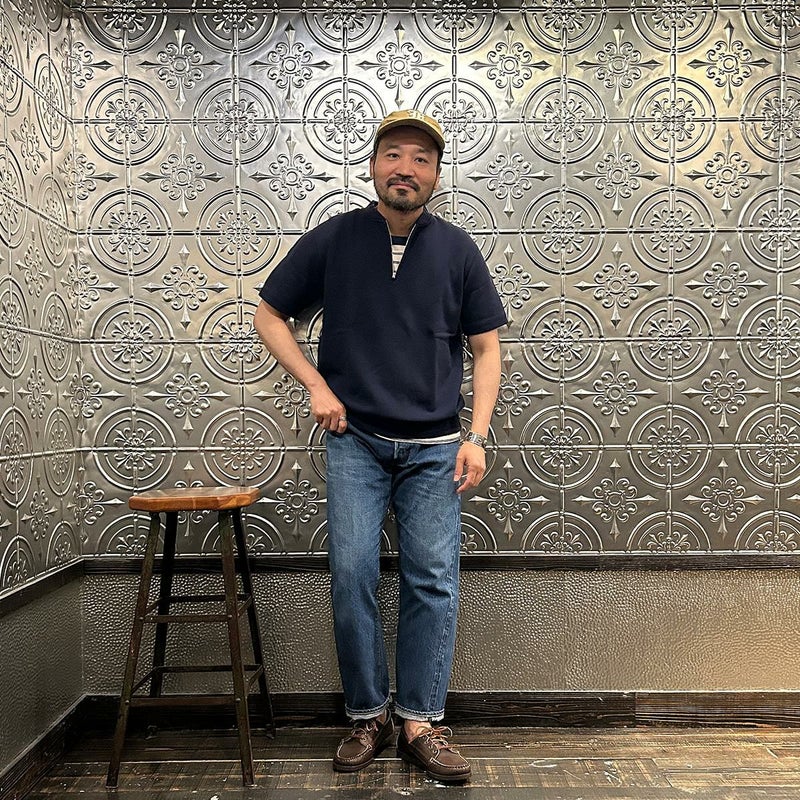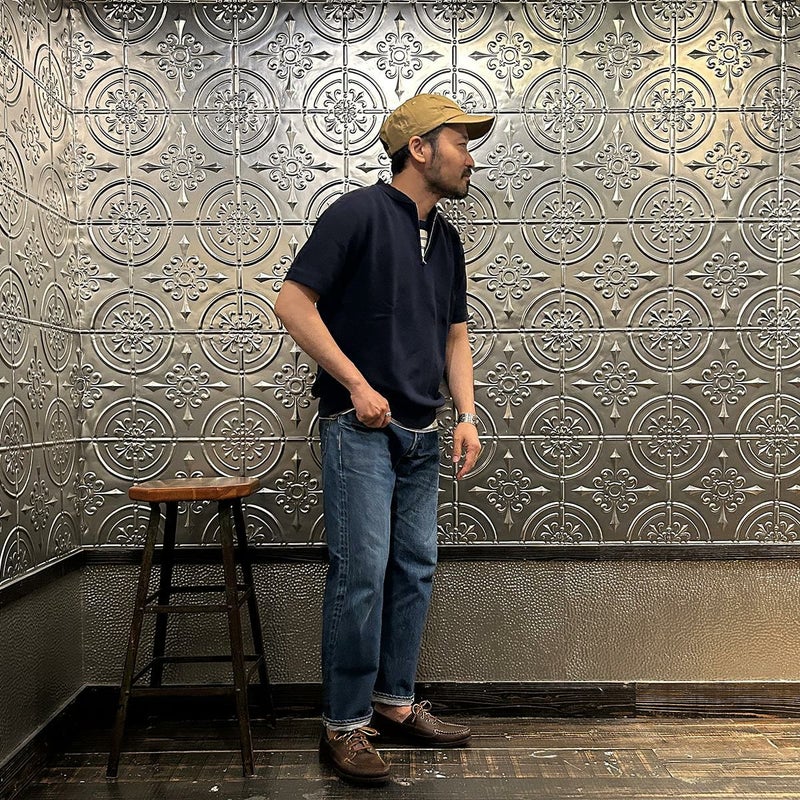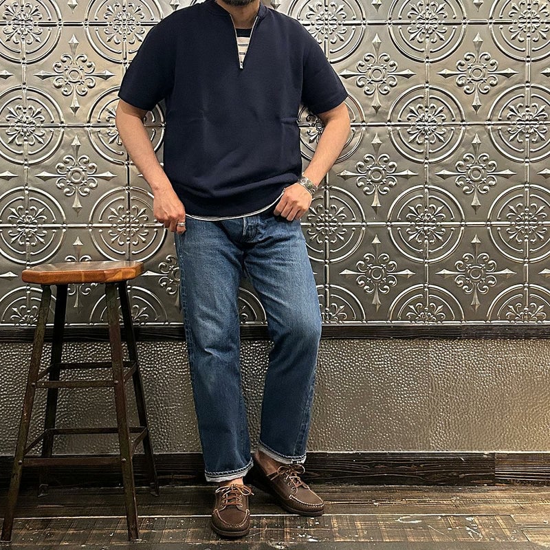 5. FELCO (フェルコ) S/S ZIP BASEBALL COLLAR SWEAT 10oz LT WEIGHT FRENCH TERRY - ITALIAN NAVY
