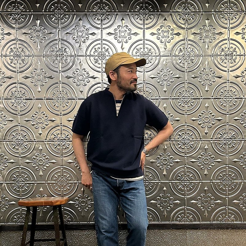 7. FELCO (フェルコ) S/S ZIP BASEBALL COLLAR SWEAT 10oz LT WEIGHT FRENCH TERRY - ITALIAN NAVY