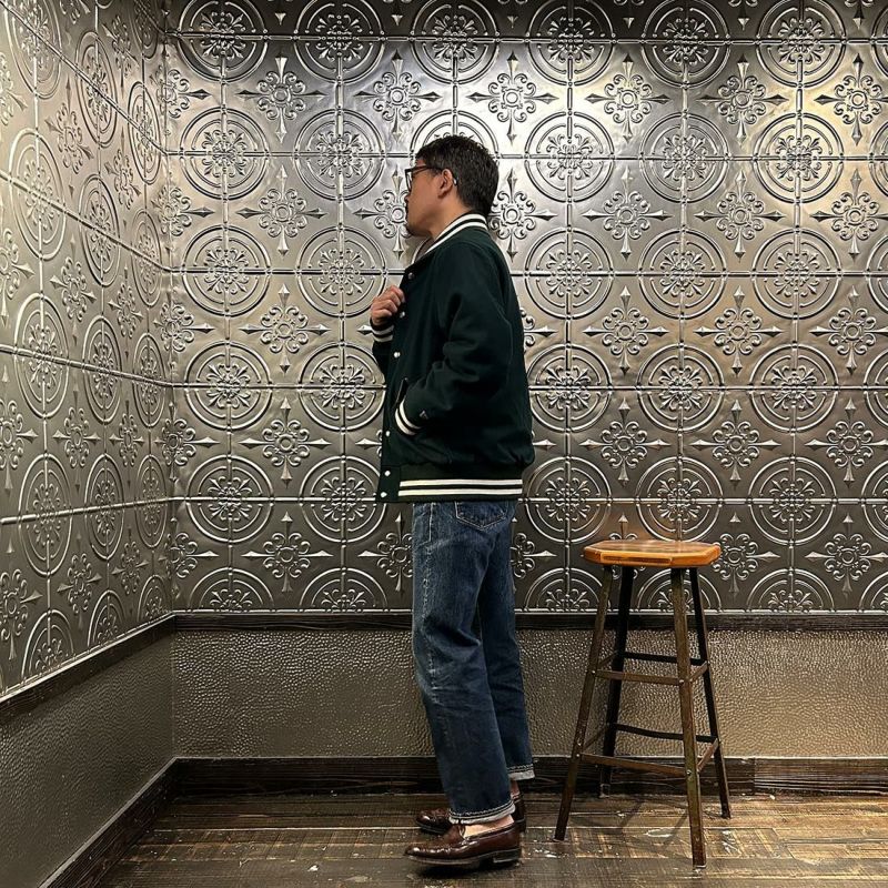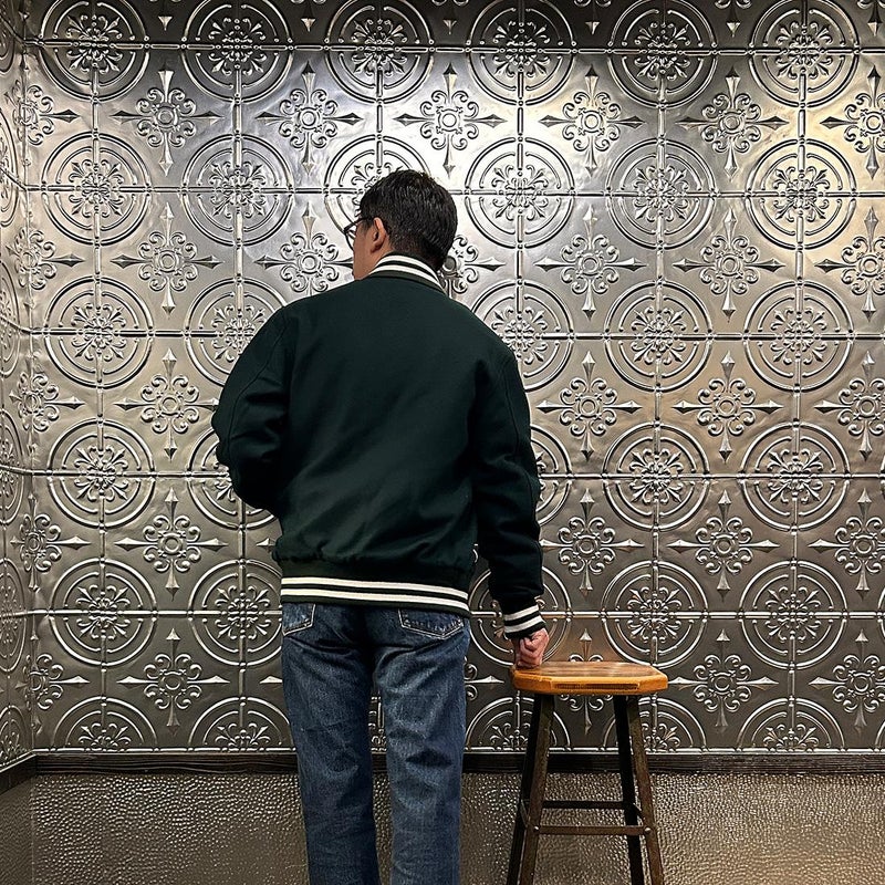 メンズ ウールメルトン ショールカラー バーシティジャケット キルティングライニング