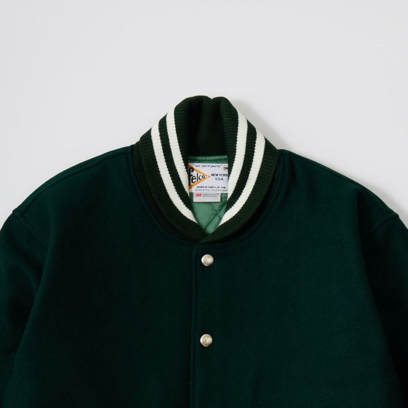 FELCO (フェルコ) SHAWL COLLAR VARSITY JACKET w/QUILT LINING ALL MELTON - NAVY