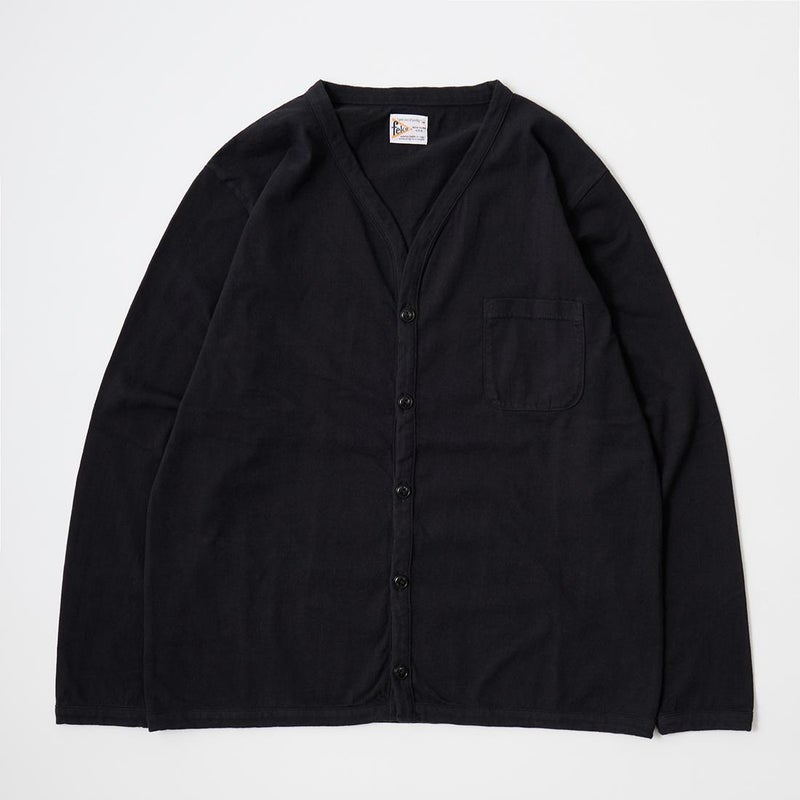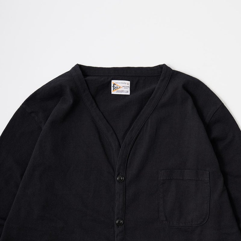 FELCO (フェルコ) L/S BINDER V NECK CARDIGAN W/POCKET 7oz 16SINGLE RUFFY JERSEY - BLACK