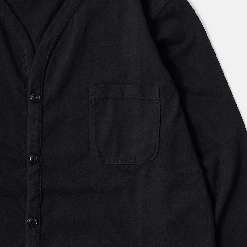 5. FELCO (フェルコ) L/S BINDER V NECK CARDIGAN W/POCKET 7oz 16SINGLE RUFFY JERSEY - BLACK