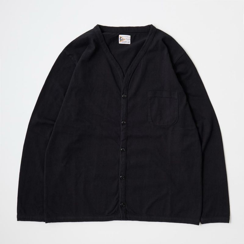 7. FELCO (フェルコ) L/S BINDER V NECK CARDIGAN W/POCKET 7oz 16SINGLE RUFFY JERSEY - BLACK