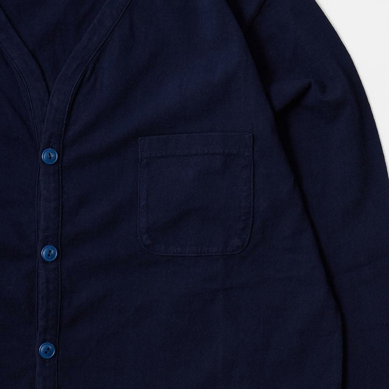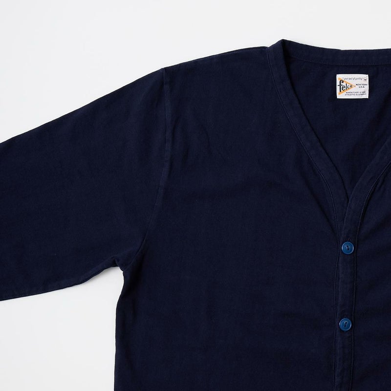 7. FELCO (フェルコ) L/S BINDER V NECK CARDIGAN W/POCKET 7oz 16SINGLE RUFFY JERSEY - ITALIAN NAVY