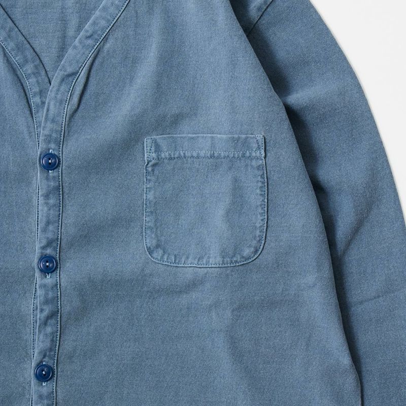 ピグメント加工 メンズ バインダーVネック 7オンス シングル ジャージー カーディガン 日本製