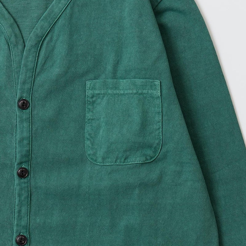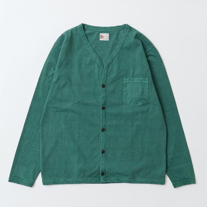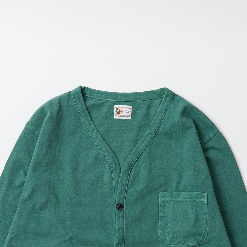 5. FELCO (フェルコ) L/S BINDER V NECK CARDIGAN W/POCKET 7oz 16SINGLE RUFFY JERSEY - PGR GREEN