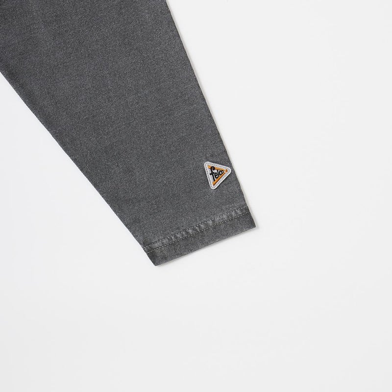 FELCO(フェルコ)のL/S BINDER NECK CREW POCKET T 7oz 16SINGLE RUFFY JERSEY。シンプルなデザインで幅広い着こなしに対応してくれるクルーネックの長袖Tシャツ。しっかりとしたバインダーネックの襟元や胸のポケット、リブなしの袖口、左袖口のワッペンが特徴的なディテール。ボックスシルエットで身幅に程良いゆとりがあり、インナーとしては勿論、一枚での着用でも様になるロンT。7オンスのタフな生地で、着倒しても型崩れしにくくデイリーに着用して頂ける1着。