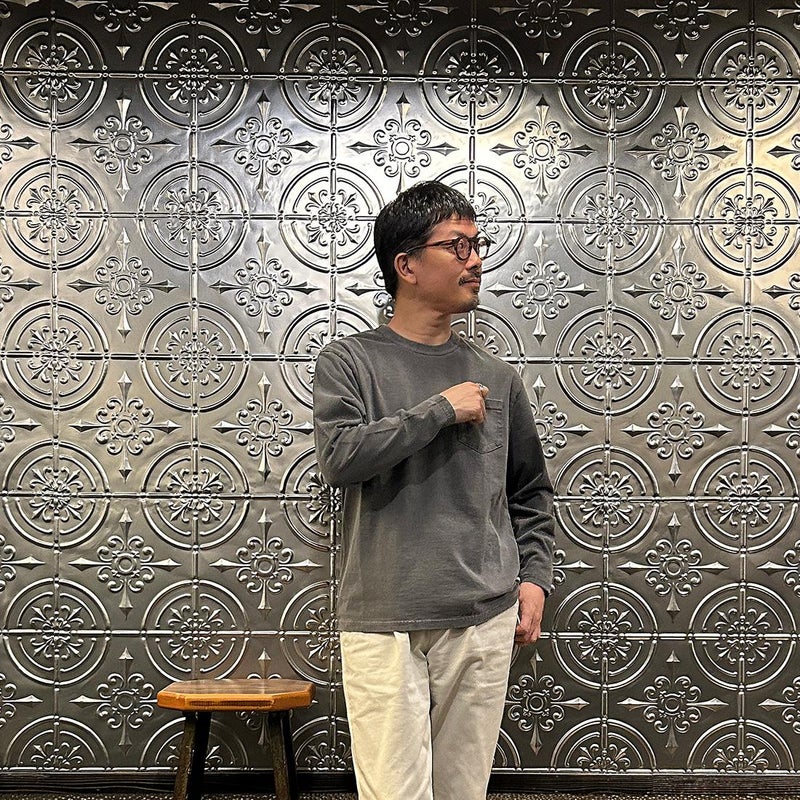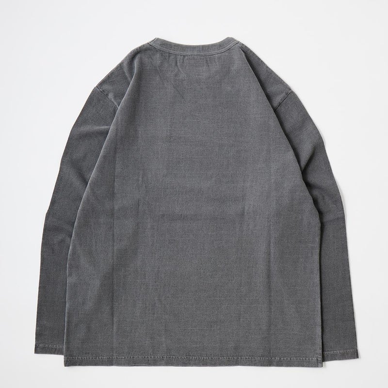 ピグメント加工 長袖バインダーネック クルー ポケットTシャツ 7オンス シングル ジャージー 日本製