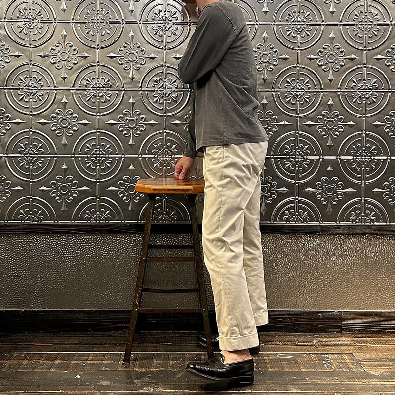 170センチ68キロの私の体型でMサイズでややゆとりのある個人的には丁度良い着用感です。このサイズであれば単品使いは勿論のこと、シャツ、ライトアウターのインナー使いとしても対応し易いサイズ感。それにスタイリングも。スポーティーから小綺麗なスタイリングまで幅広いスタイルで楽しめる着回しの良さ。それこそ普段穿くパンツのシルエットから考えると尚更丁度良いサイズ感だと思いましたね。軽めの生地感にややコシのあるタフで丈夫な素材を使用したシンプルなデザイン。こういうTシャツこそ何枚持っていても飽きないんですよね。