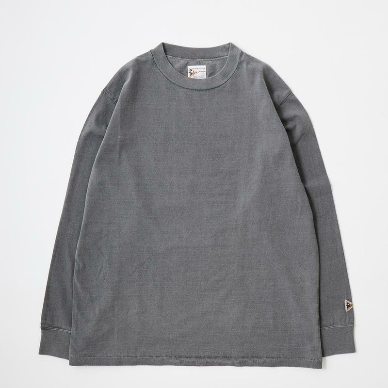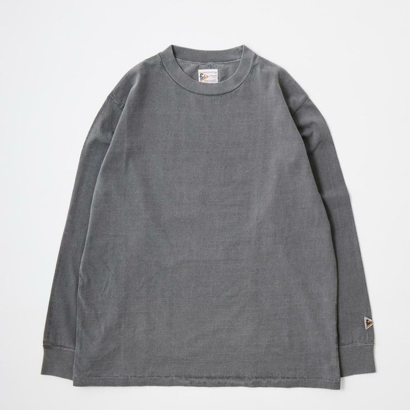 ピグメント加工 長袖ハイクルーネック 7オンス シングル ジャージー 日本製