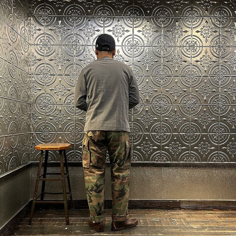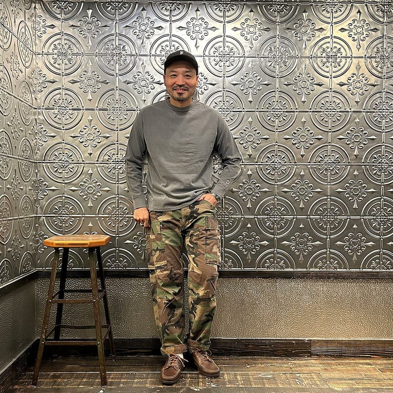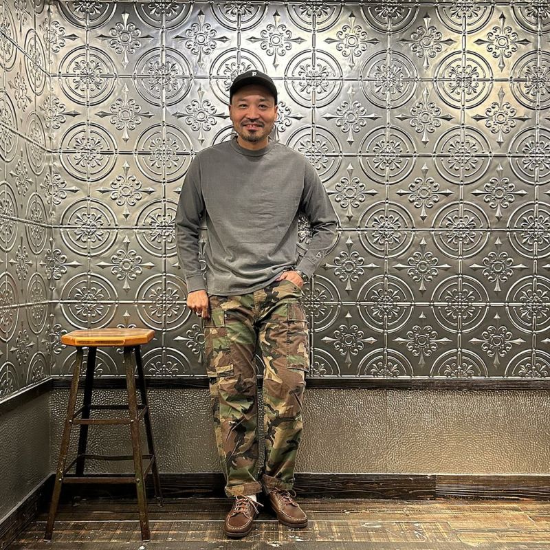 170センチ68キロの私の体型でMサイズでややゆとりのある個人的には丁度良い着用感です。このサイズであれば単品使いは勿論のこと、シャツ、ライトアウターのインナー使いとしても対応し易いサイズ感。それにスタイリングも。スポーティーから小綺麗なスタイリングまで幅広いスタイルで楽しめる着回しの良さ。それこそ普段穿くパンツのシルエットから考えると尚更丁度良いサイズ感だと思いましたね。軽めの生地感にややコシのあるタフで丈夫な素材を使用したシンプルなデザイン。こういうTシャツこそ何枚持っていても飽きないんですよね。