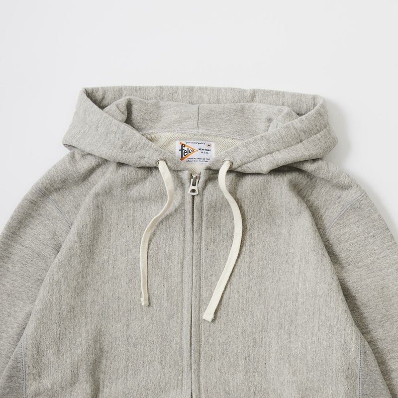 FELCO (フェルコ) CLASSIC FIT 12oz MD WEIGHT FRENCH TERRY INVERSE WEAVE ZIP PARKA W/KANGAROO POCKET - TWISTED GREY