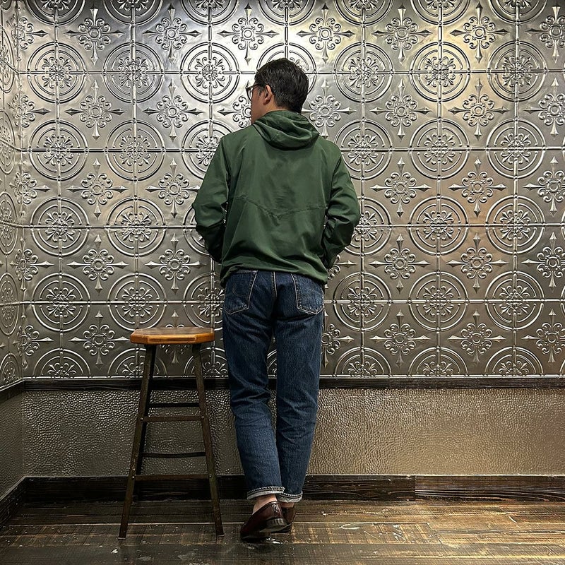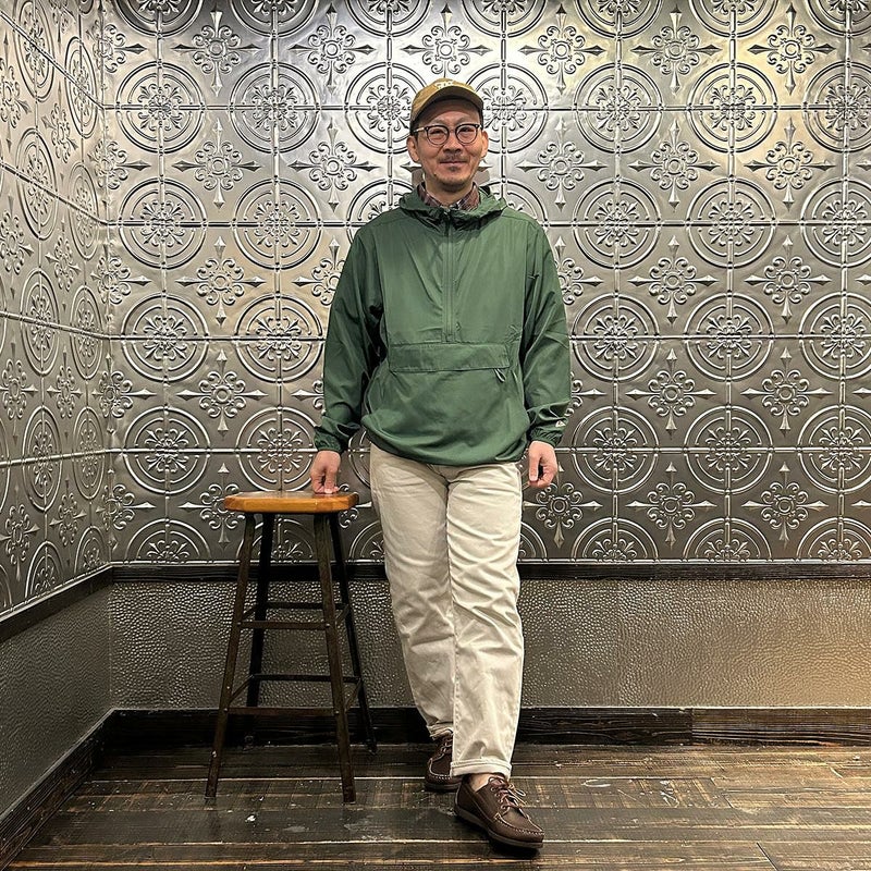FELCO(フェルコ)のNYLON PACKABLE ANORAK PARKA。軽量で肌触りの良いポリエステル素材を使用たアノラックパーカー。胸部分の大きなポケットが特徴的。胸ポケット部分を裏返してコンパクトに収納できるパッカブル仕様。胸ポケットの内側にサイドから手を入れられるポケットも装備。フードと裾にドローコードを装備。立体裁断による身頃の切り返しがポイント。