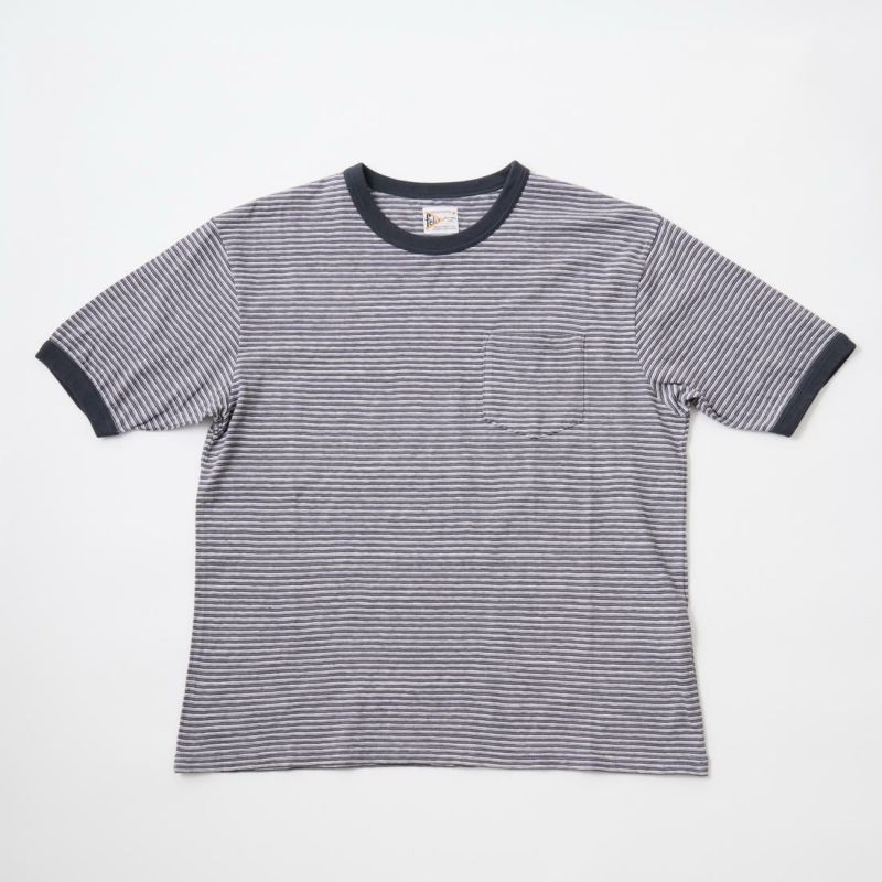 FELCO (フェルコ) S/S RINGER POCKET TEE BOYISH STRIPE - 108BLUE_WHITE&CHARCOAL STRIPE