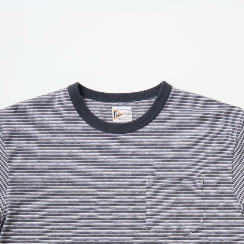 5. FELCO (フェルコ) S/S RINGER POCKET TEE BOYISH STRIPE - 108BLUE_WHITE&CHARCOAL STRIPE