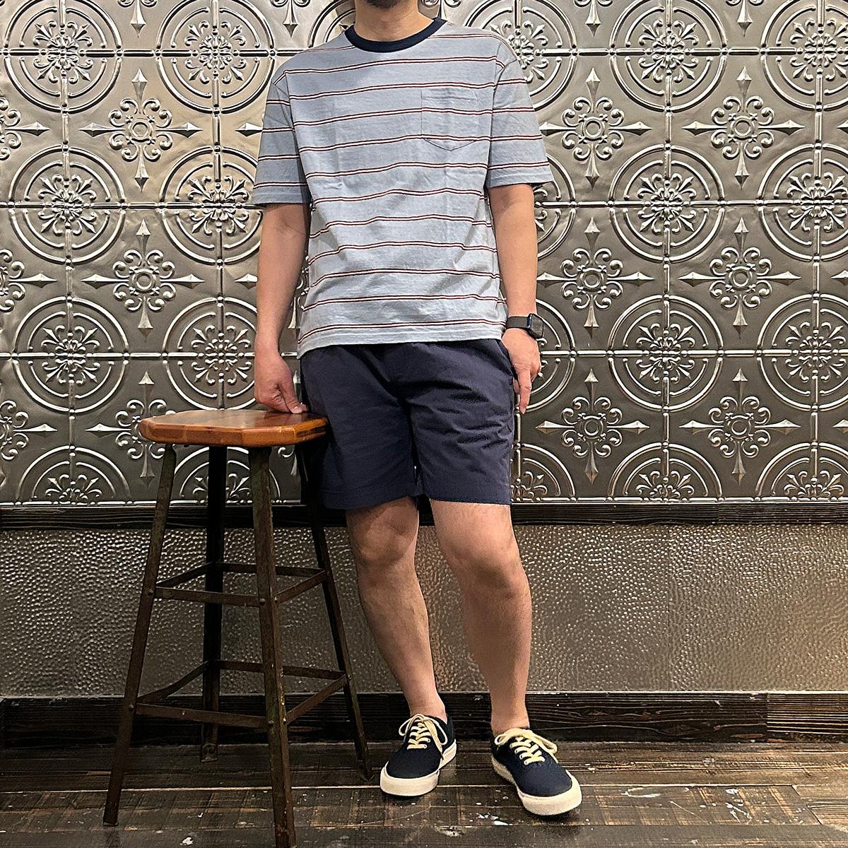 メンズ クルーネック ポケット ストライプ Tシャツ 日本製