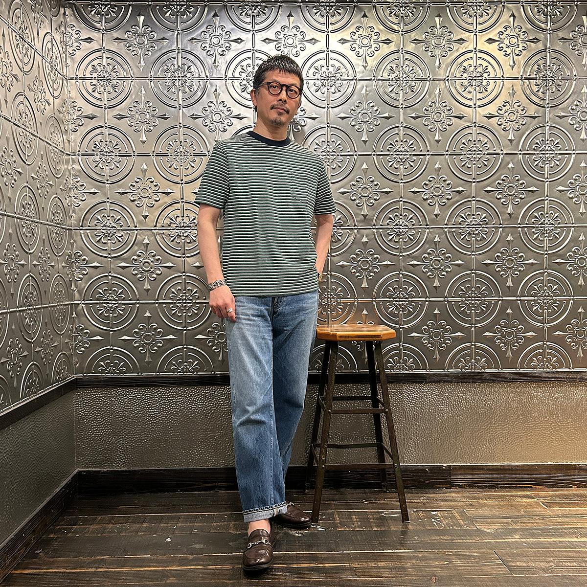 メンズ クルーネック ポケット ストライプ Tシャツ 日本製