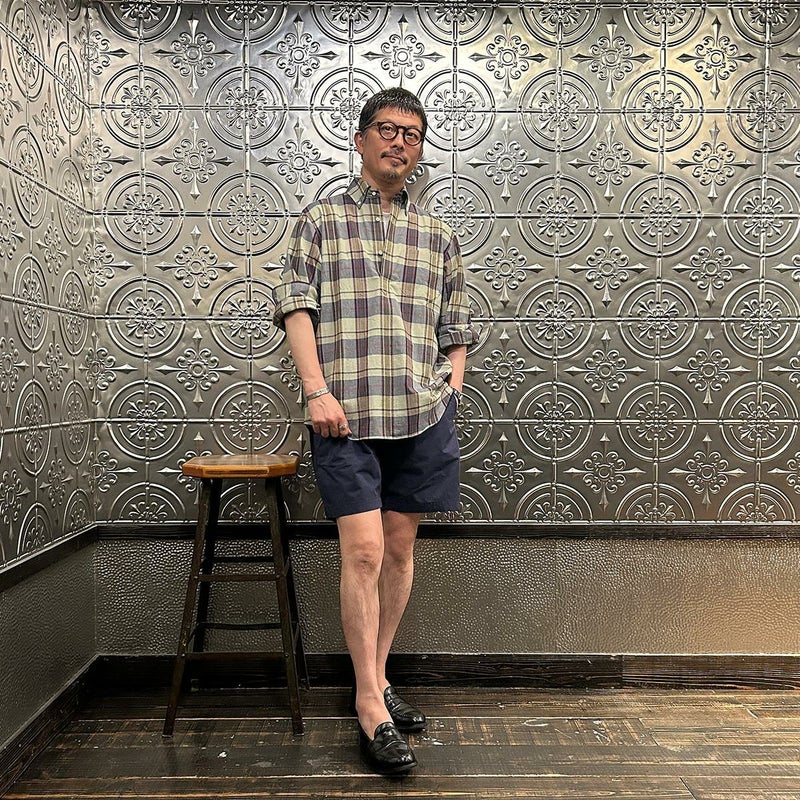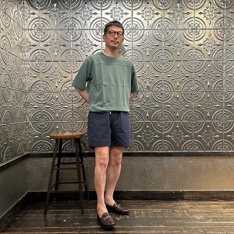 FELCO(フェルコ)のGROUND KEEPER SHORT。サラッとした肌触りのコットン素材を使用したショーツ。ウエストはストレスフリーのゴム仕様。ドローコードも装備しておりサイズ調節が可能。腰下の左右にハンドポケット。バックには片玉縁仕上げのポケットを左右に装備。ゆったりとしたシルエットでショートレングスのバランスの良いシルエット。スタイルを選ばない使い勝手の良い1本。