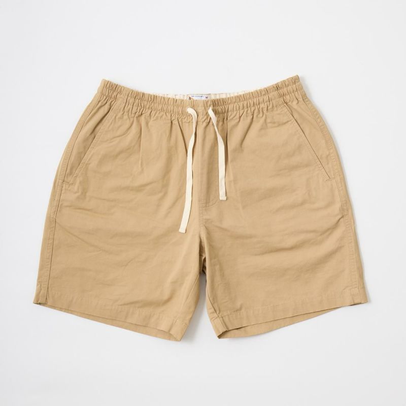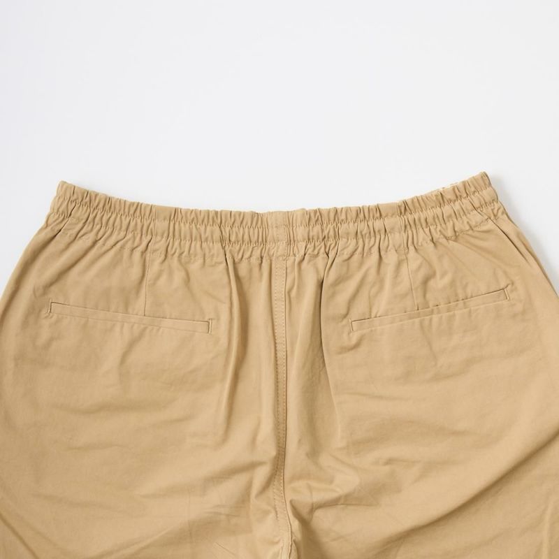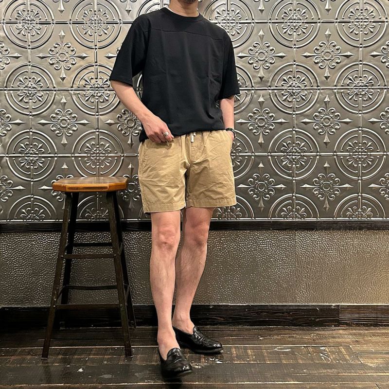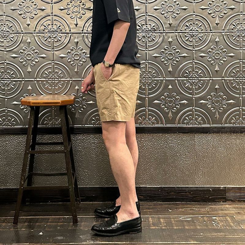 FELCO(フェルコ)のGROUND KEEPER SHORT。サラッとした肌触りのコットン素材を使用したショーツ。ウエストはストレスフリーのゴム仕様。ドローコードも装備しておりサイズ調節が可能。腰下の左右にハンドポケット。バックには片玉縁仕上げのポケットを左右に装備。ゆったりとしたシルエットでショートレングスのバランスの良いシルエット。スタイルを選ばない使い勝手の良い1本。