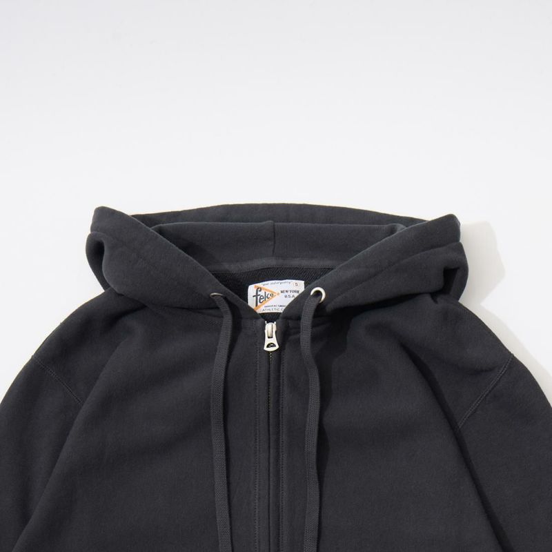FELCO (フェルコ) CLASSIC FIT INVERSE WEAVE FULL ZIP PARKA KANGAROO POCKET 10oz FRENCH TERRRY - 08 BLACK