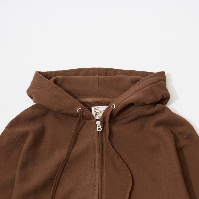 FELCO (フェルコ) CLASSIC FIT INVERSE WEAVE FULL ZIP PARKA KANGAROO POCKET 10oz FRENCH TERRRY - 19 D BROWN