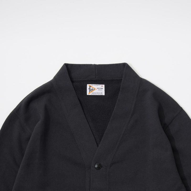 FELCO (フェルコ) CLASSIC FIT 10oz TERRY V NECK BUTTON CARDIGAN - 08 BLACK