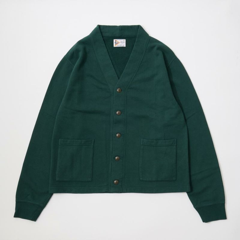 FELCO (フェルコ) CLASSIC FIT 10oz TERRY V NECK BUTTON CARDIGAN - 67 FOREST GREEN