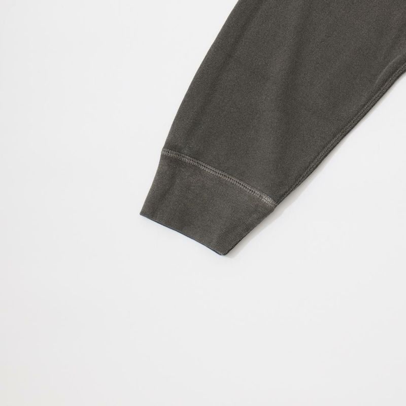 170センチ68キロで「M」で少しゆったり目のサイズです。ゆったりとしたサイズ感がお好みの方にオススメ。生地は柔らかくて着心地の良い丈夫な生地感。幅広いスタイルで楽しめるシンプルなデザイン。春秋冬シーズンと長い期間重宝する1着です。
