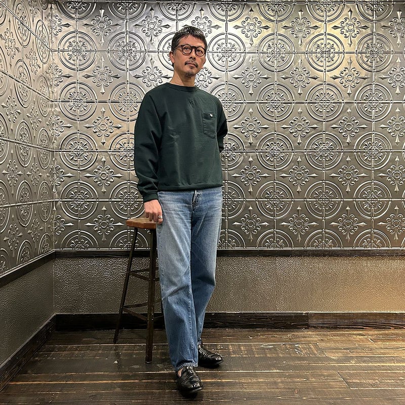 FELCO (フェルコ) 16oz INLAY ALL SEAM RAGLAN V GUSSET CREW W/CHEST SNAP POCKET - AMERICAN NAVY